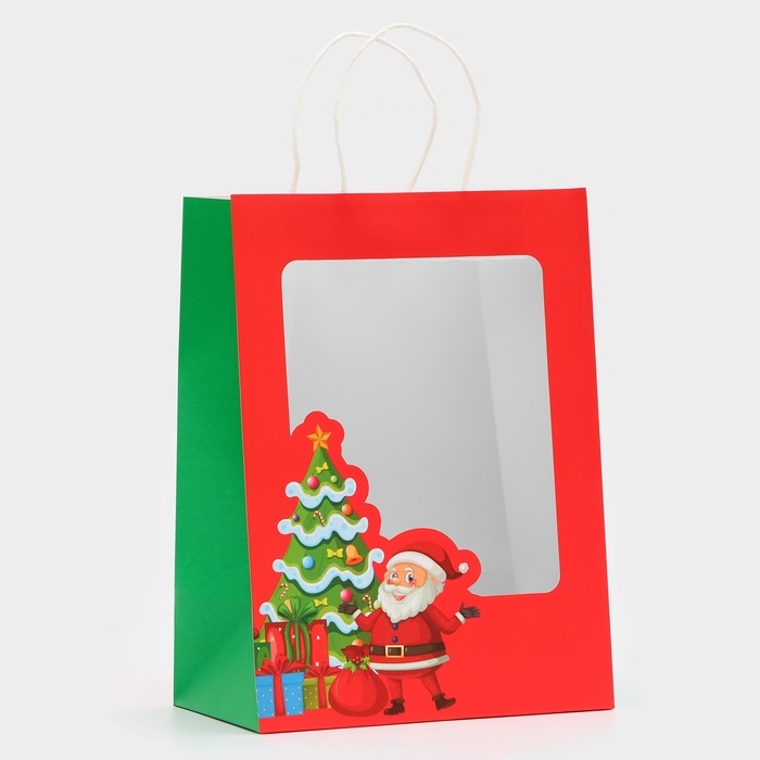 Пакет подарочный новогодний с окном "Дед Мороз" 30 х 22 х 14 см.