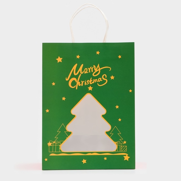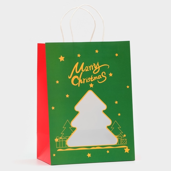 Пакет подарочный новогодний с окном "Ёлка" 30 х 22 х 14 см.