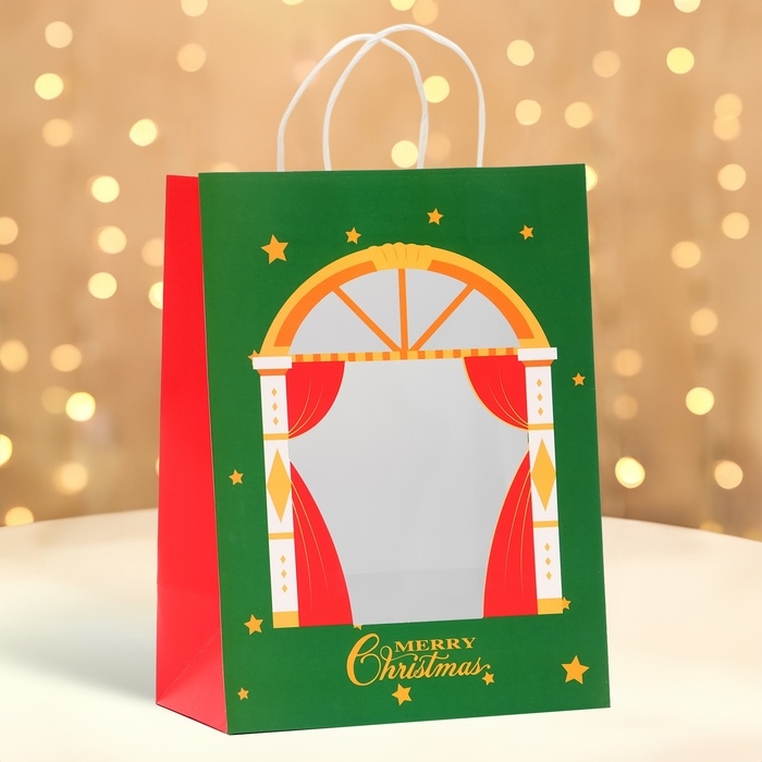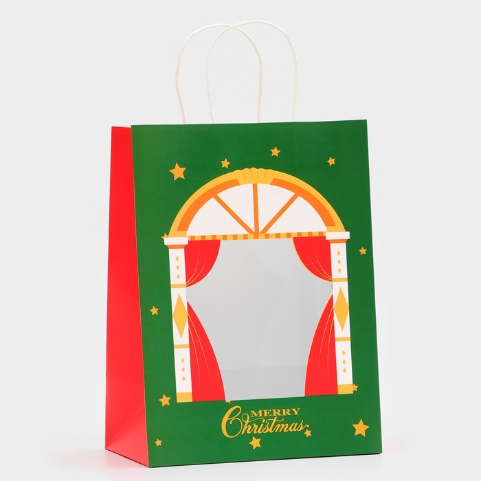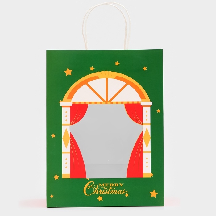 Пакет подарочный новогодний с окном "Театр" 30 х 22 х 14 см.