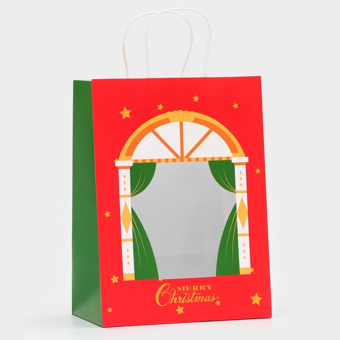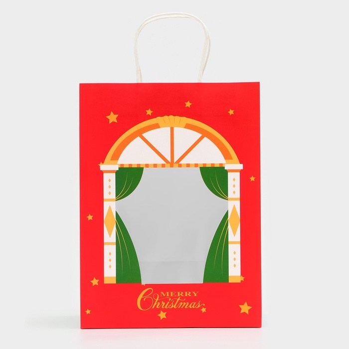 Пакет подарочный новогодний с окном "Театр" 30 х 22 х 14 см.