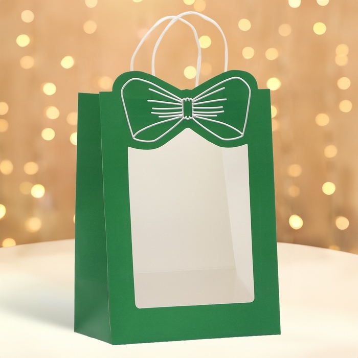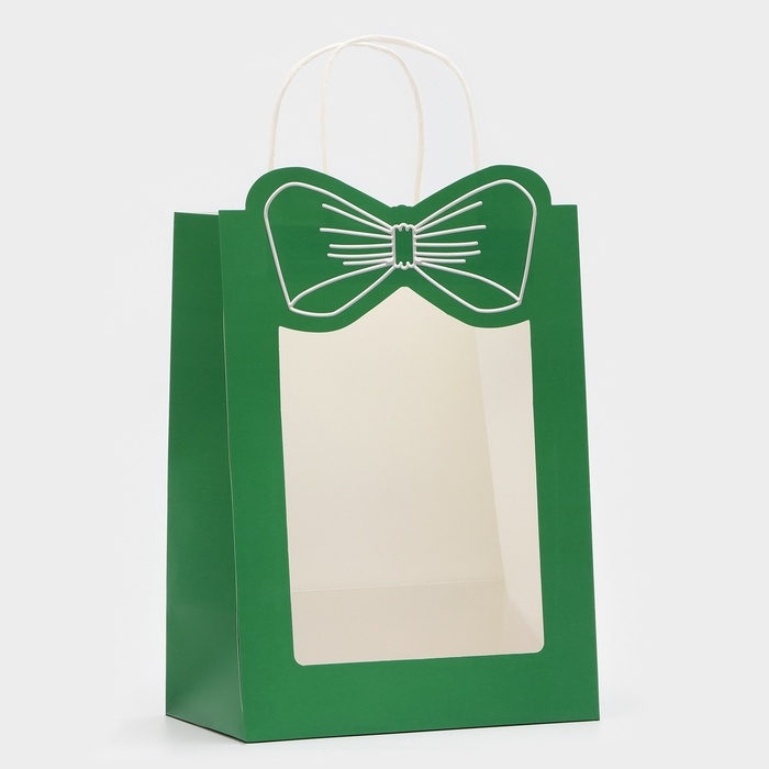 Подарочный пакет с окном "Бант" размером 30 х 22 х 14 см – это изысканное решение для эффектной упаковки вашего подарка.