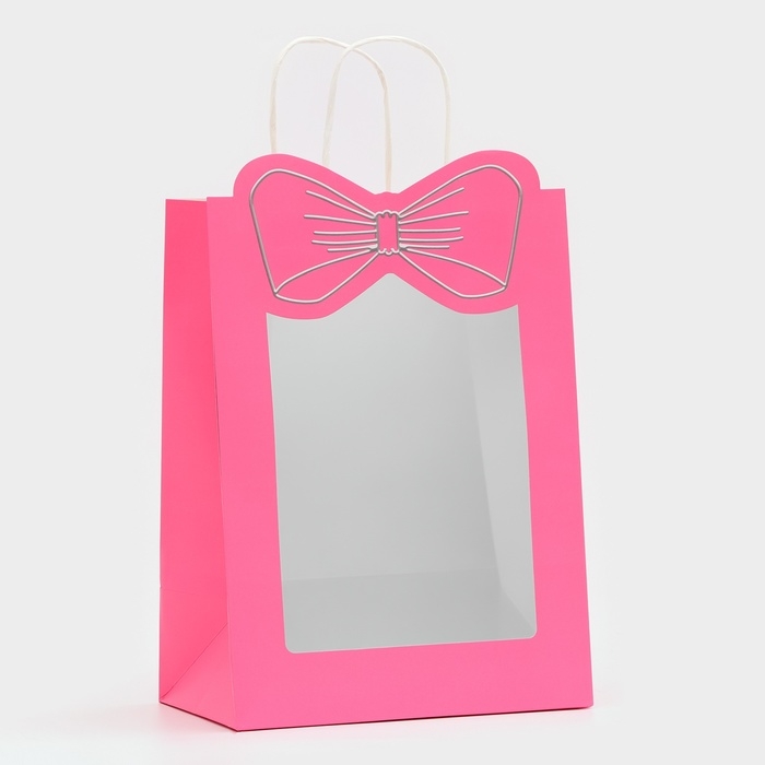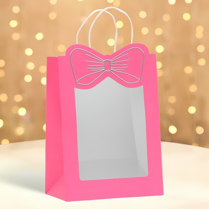 Подарочный пакет с окном "Бант" размером 30 х 22 х 14 см – это изысканное решение для эффектной упаковки вашего подарка.