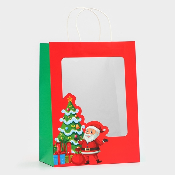 Пакет подарочный новогодний с окном "Дед Мороз" 26 х 35 х 16 см.