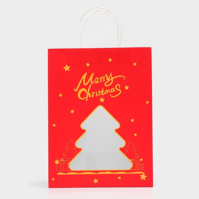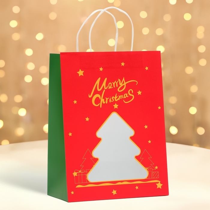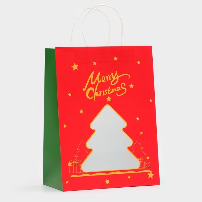 Пакет подарочный новогодний с окном "Ёлка" 26 х 35 х 16 см.