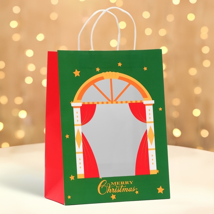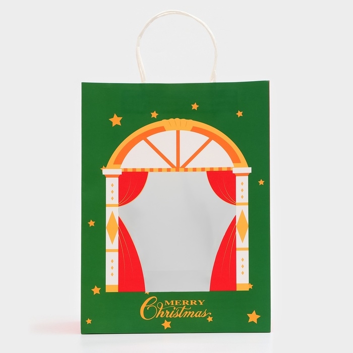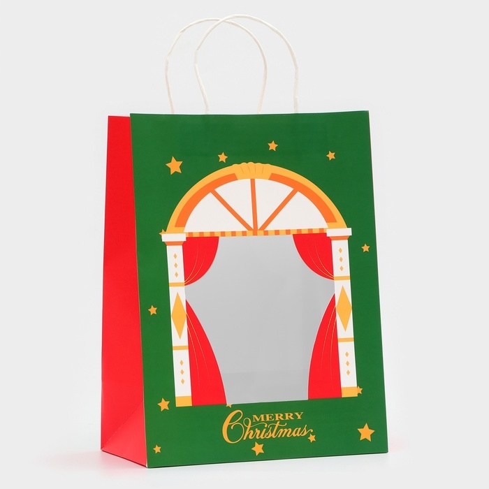 Пакет подарочный новогодний с окном "Театр" 26 х 35 х 16 см.