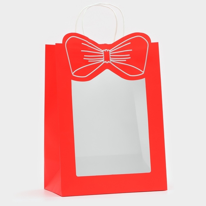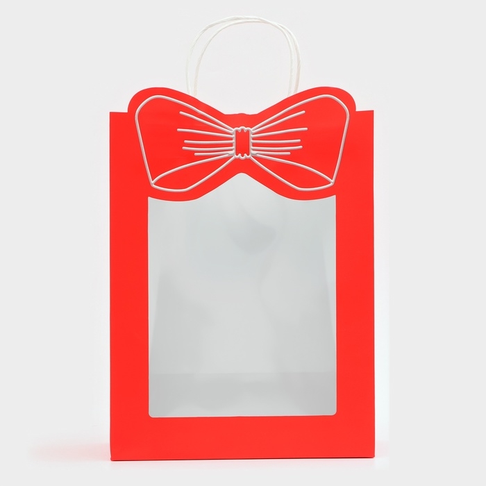 Подарочный пакет с окном "Бант" размером 26 х 35 х 15 см – это изысканное решение для эффектной упаковки вашего подарка.
