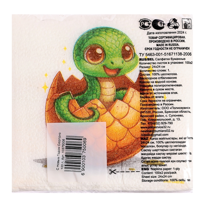 Салфетки новогодние бумажные «С Новым годом: сюрприз», однослойные, 24х24 см, 100 шт.