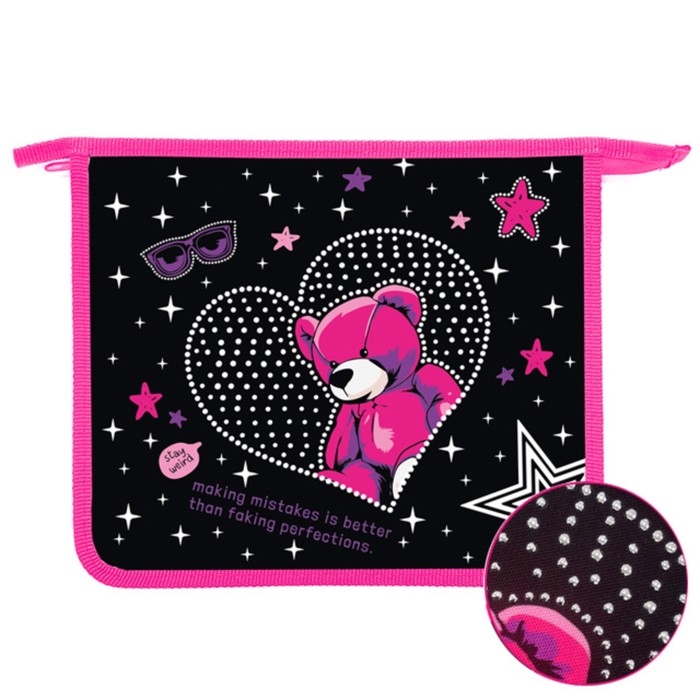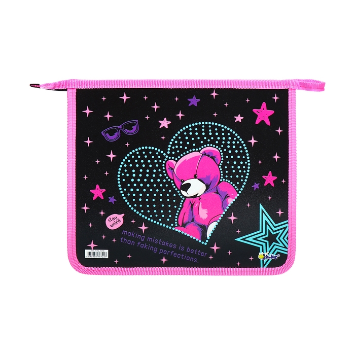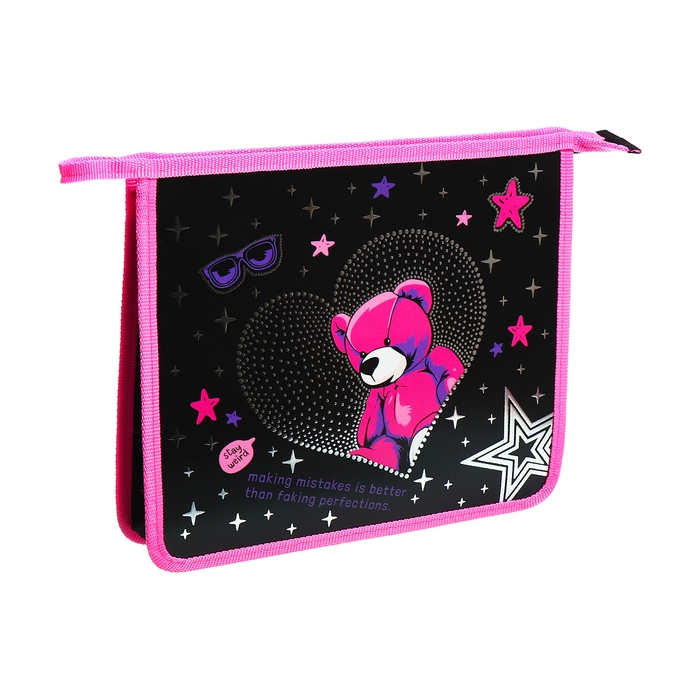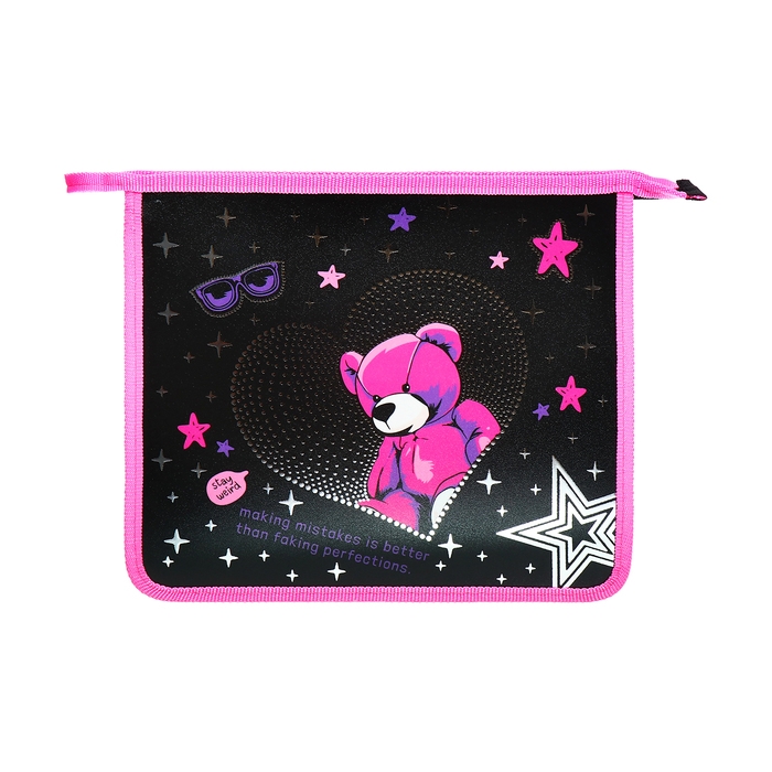 Папка д/тетрадей А5 молния сверху пластик 205*240 ПТ 73-12 дев Яркий мишка фольга 72734