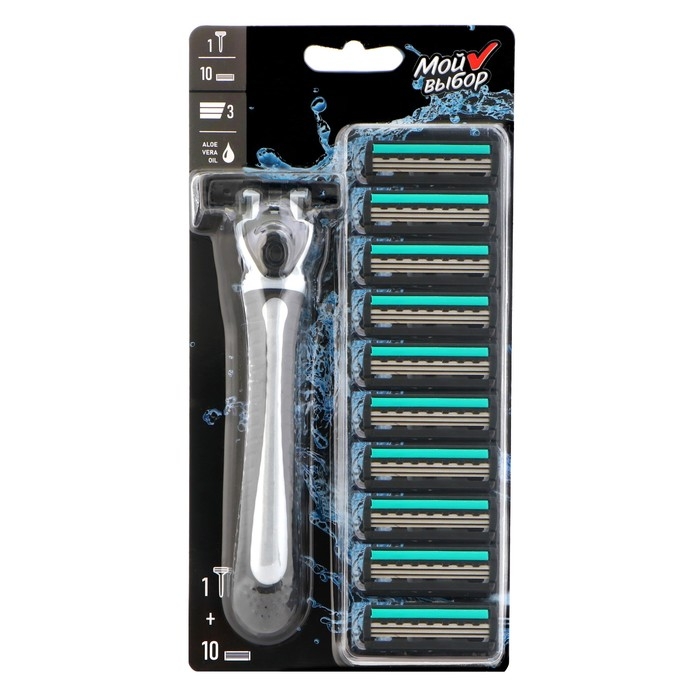 Бритвенный станок + 10 сменных кассет с 3 лезвиями с увлажняющей полоской