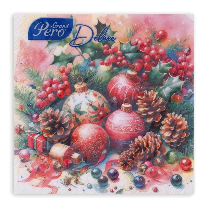 Новогодние салфетки бумажные GrandPero Deluxe «Этюд», 3 слоя, 33х33 см, 20 шт