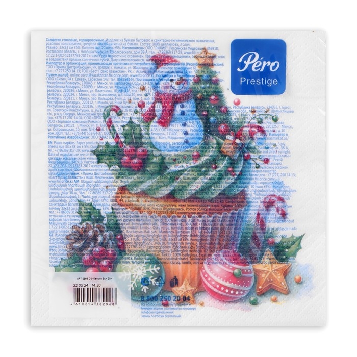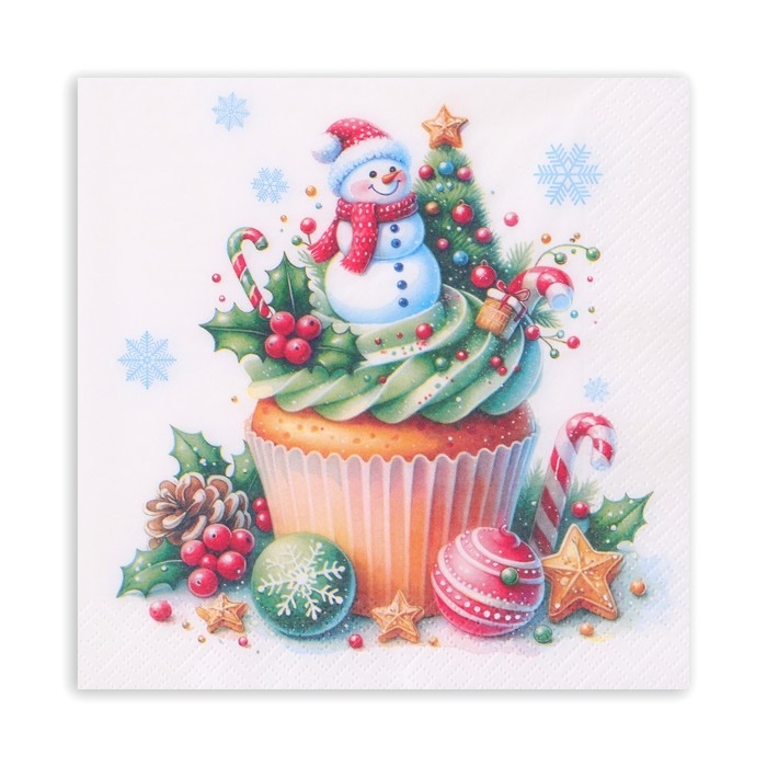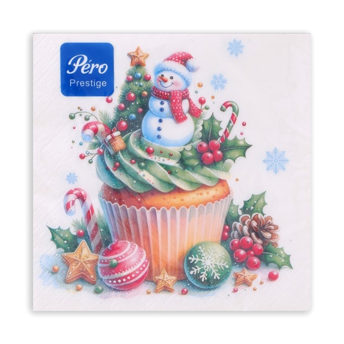 Новогодние салфетки бумажные Pero Prestige «Кексик», 3 слоя, 33х33 см, 20 шт