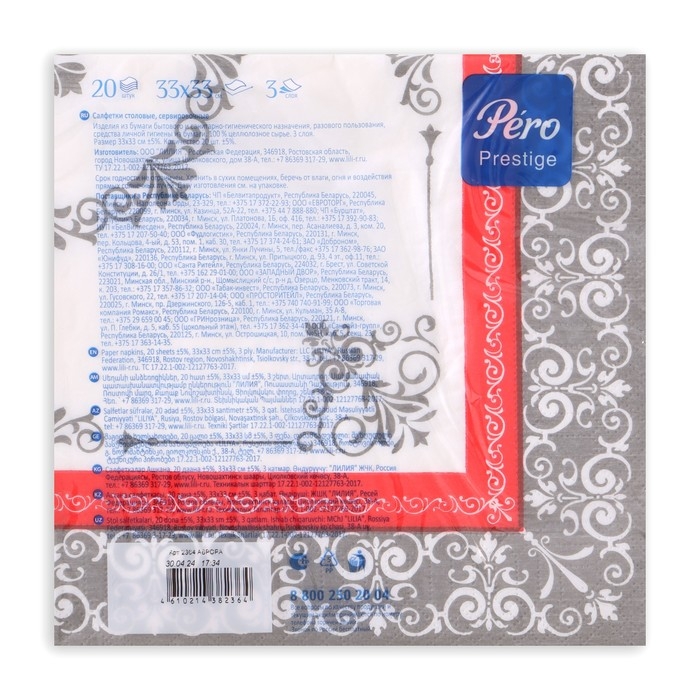 Новогодние салфетки бумажные Pero Prestige «Аврора», 3 слоя, 33х33 см, 20 шт