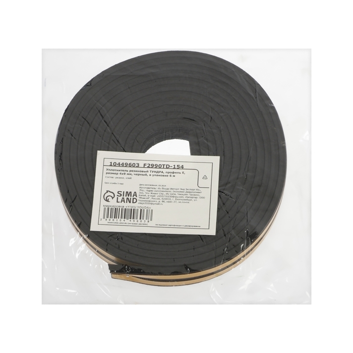 Уплотнитель резиновый ТУНДРА, профиль E, размер 4х9 мм, черный, в упаковке 6 м