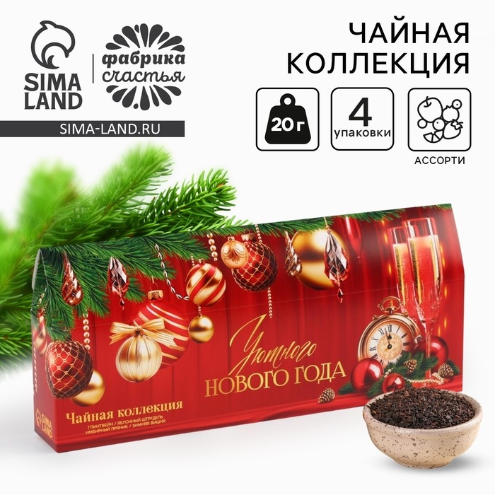 Новый год! Чай чёрный, коллекция «Уютного нового года», 4 новогодних вкуса (20 г x 4 шт)