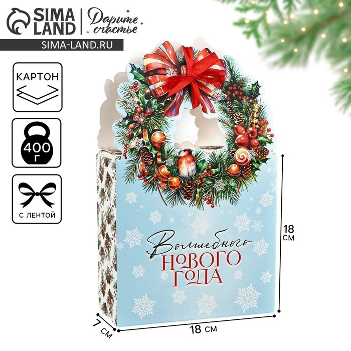 Коробка новогодняя складная «Волшебного Нового года» 12.3 х 21 х 5.3 см, Новый год