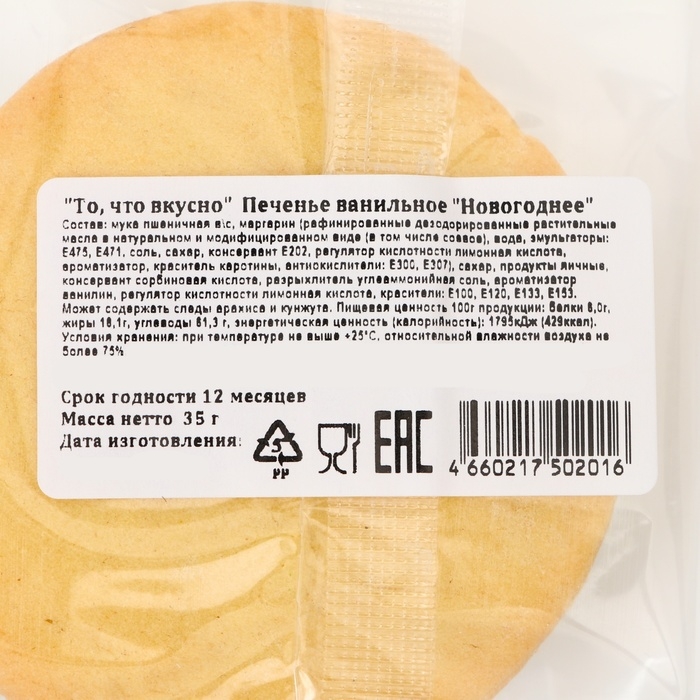 Новый год. Печенье ванильное "Новогоднее" 35гр (1кор=16шт)