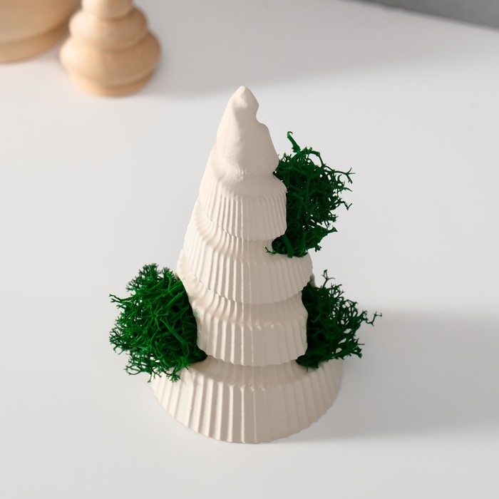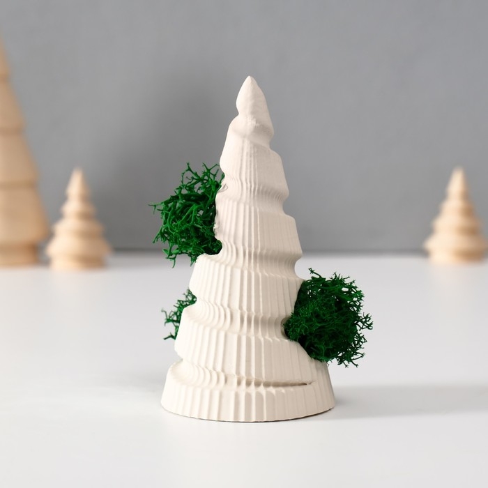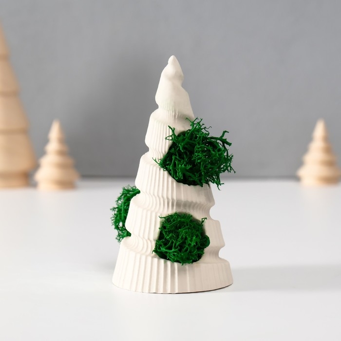 Сувенир "Новогодняя елка" со мхом белая, высота 10 см, d-5 см (мох зелен стабил)