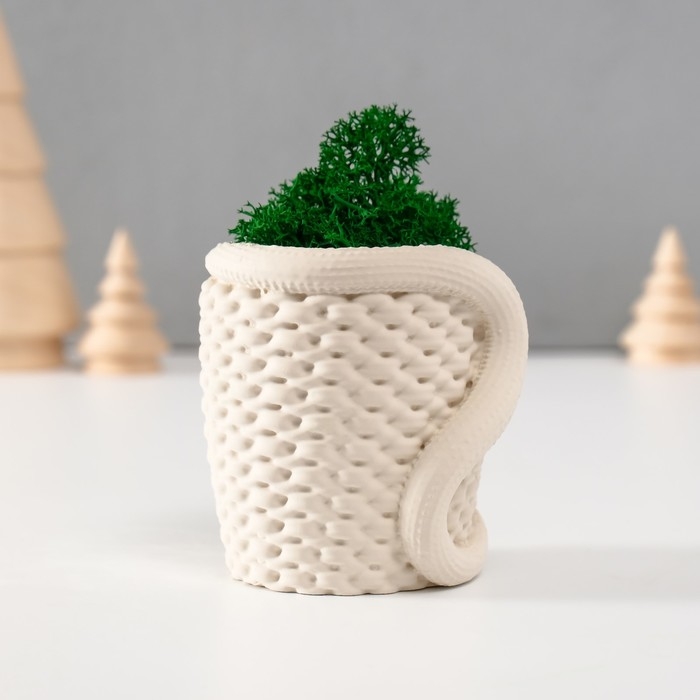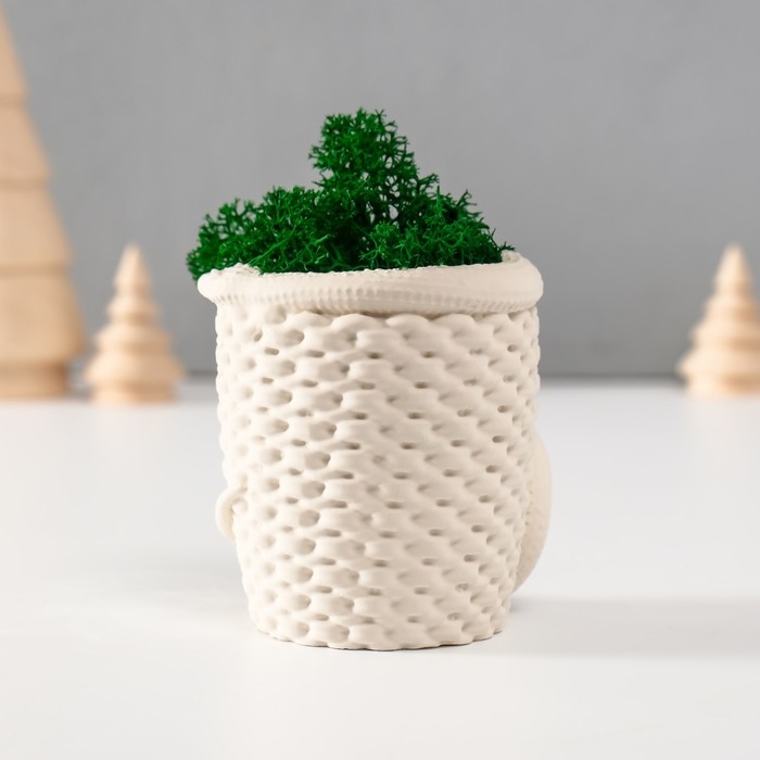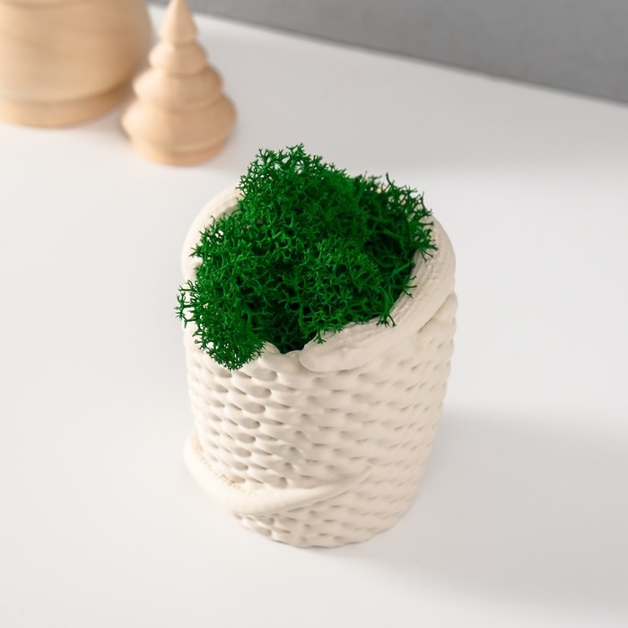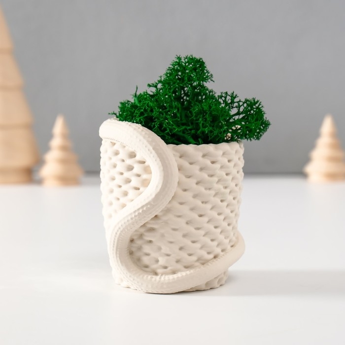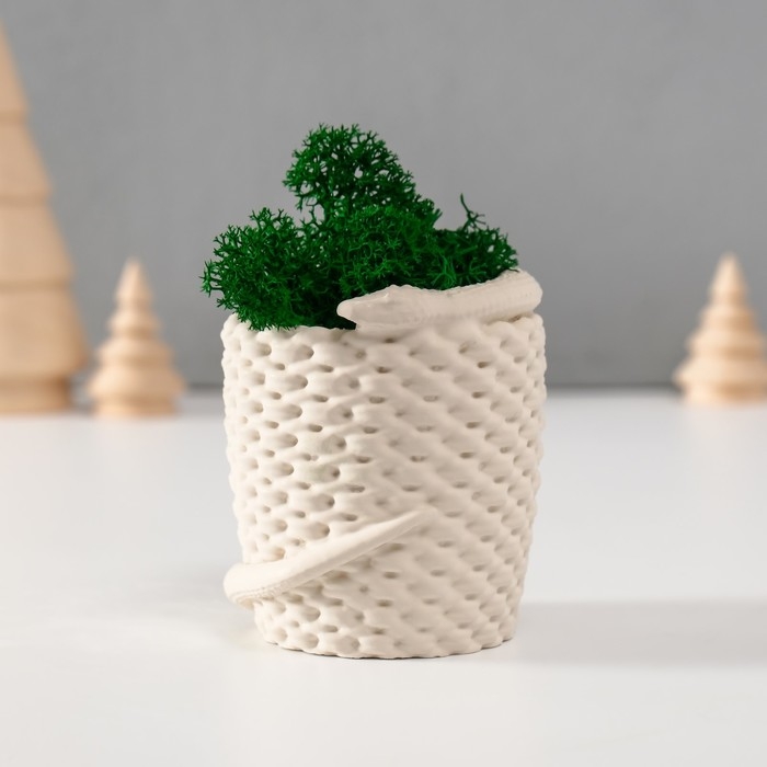 Кашпо бетонное "Змея корзинка"со мхом 7х6х7 см белая (мох зелен стабил)
