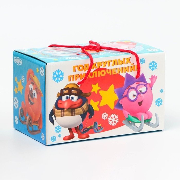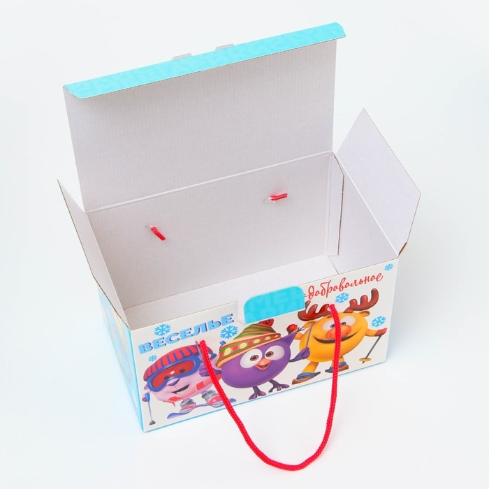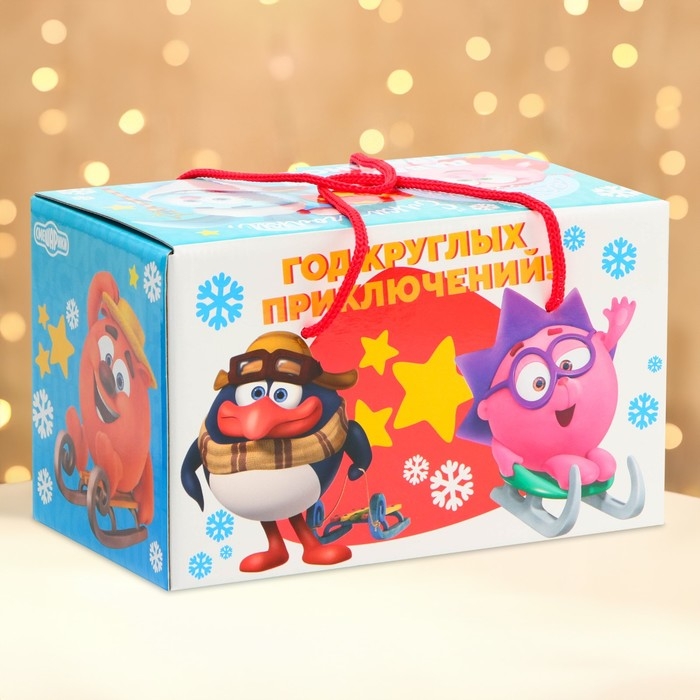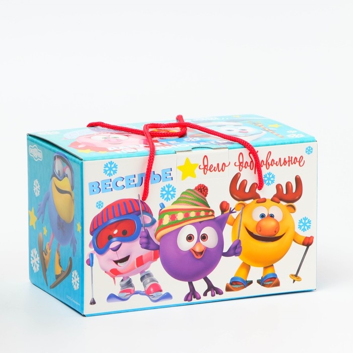 Новый год. Подарочная коробка Новогодняя Посылка "Смешарики" с веревочными ручками 20 х 12 х 12 см.