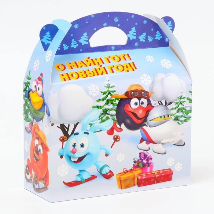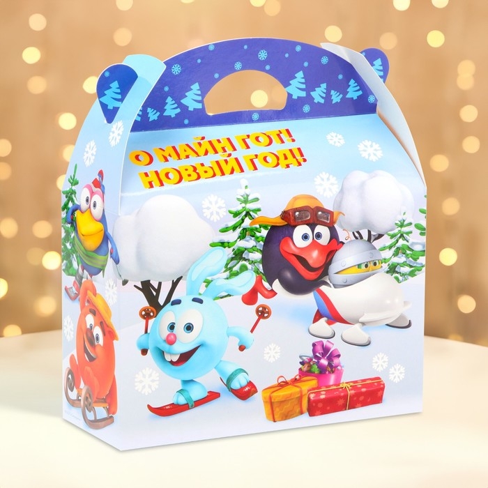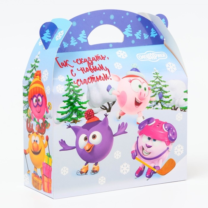 Новый год. Подарочная коробка Новогодняя Баул "Смешарики" лицензия 22 х 9 х 22 см (+5,6 см).