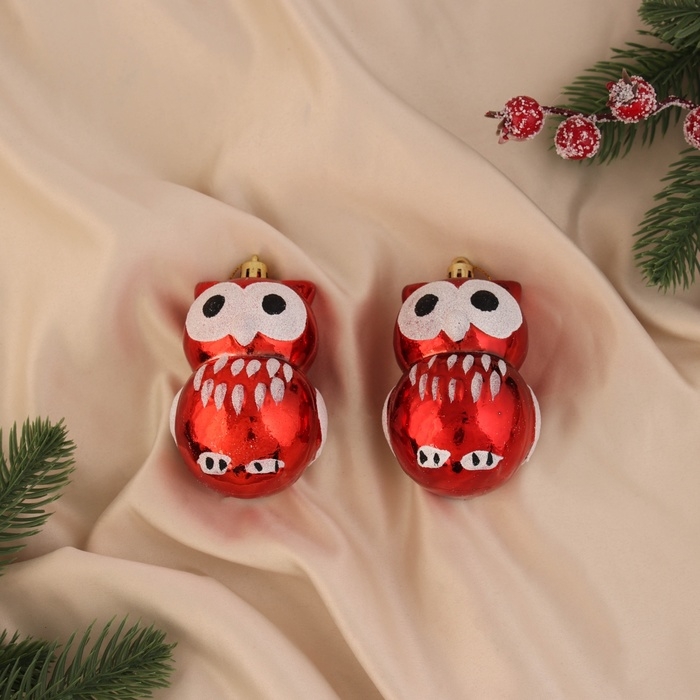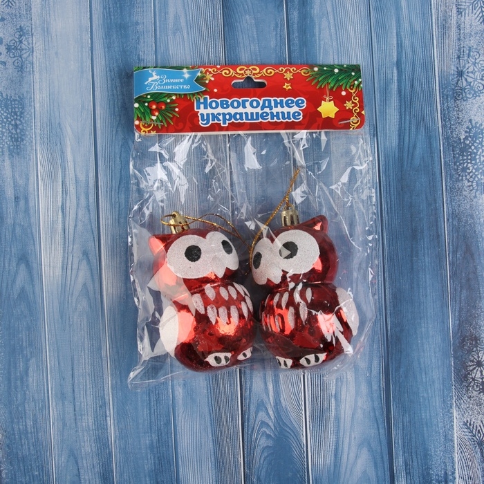 Украшение ёлочное "Сова с большими глазами" (набор 2 шт) 8,5х5 см, красный
