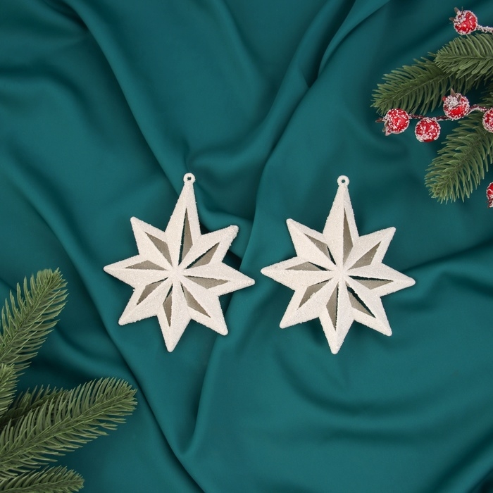Украшение ёлочное "Снежинка многогранная" (набор 2 шт) 11,5х9,5 см, белый