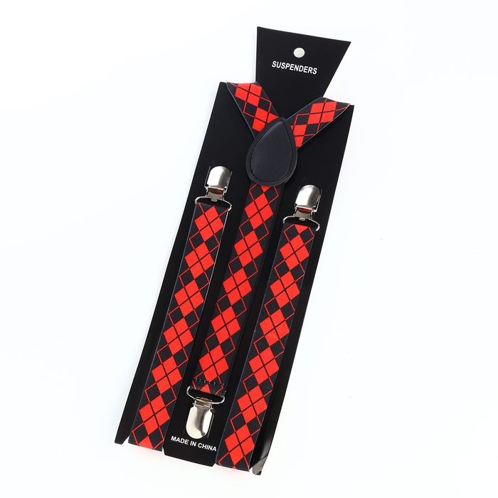 Подтяжки взрослые, ширина 2,5 см, цвет чёрный/красный