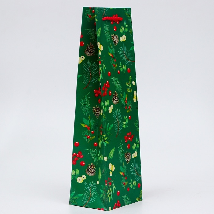 Подарочный пакет новогодний — идеальный выбор для упаковки бутылки.