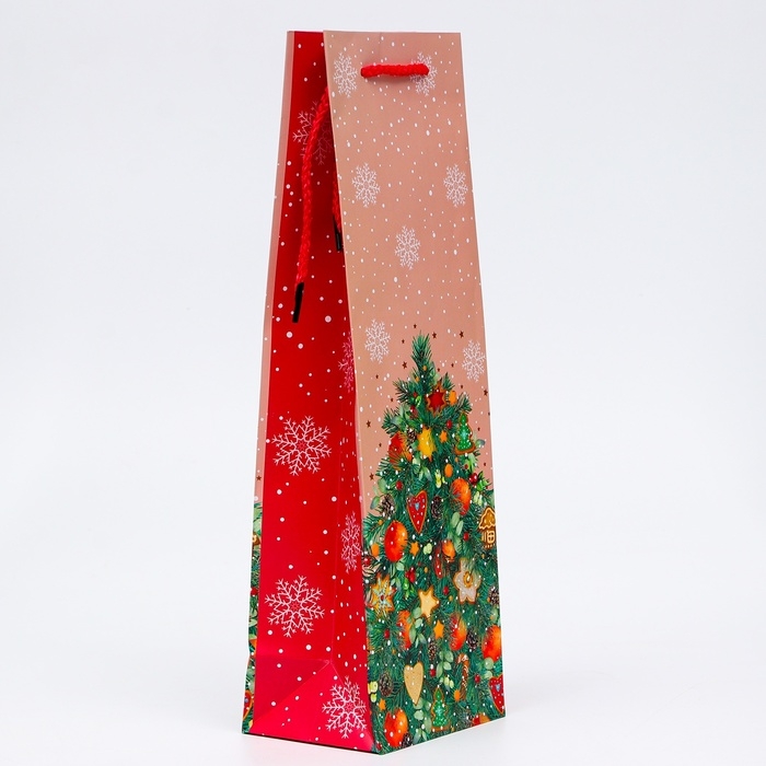 Подарочный пакет новогодний — идеальный выбор для упаковки бутылки.