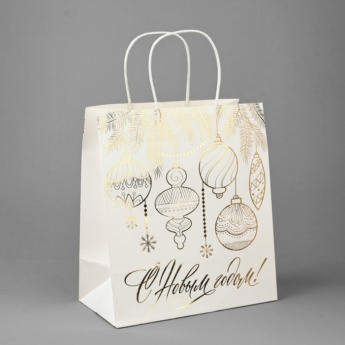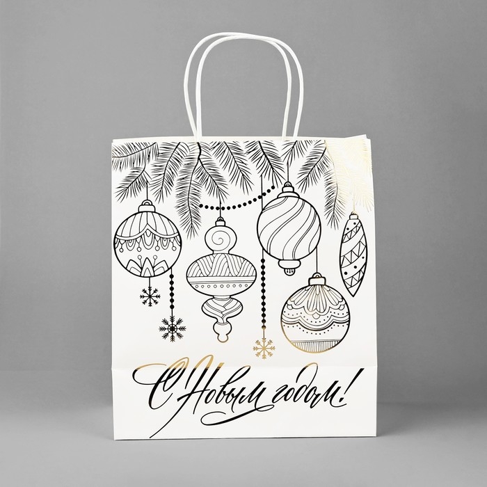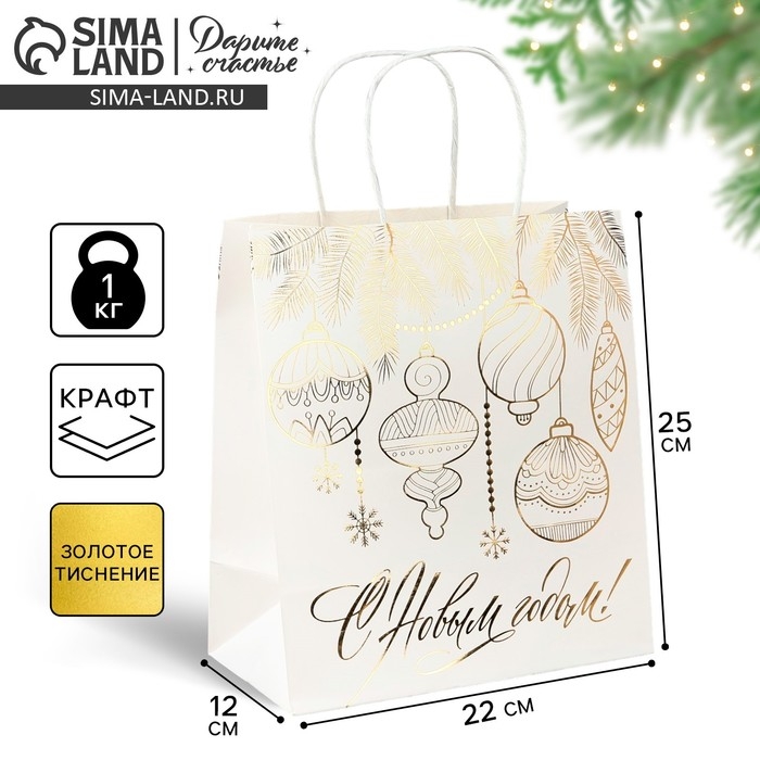 Пакет подарочный новогодний крафтовый «С Новым годом», 22 х 25 х 12 см, Новый год