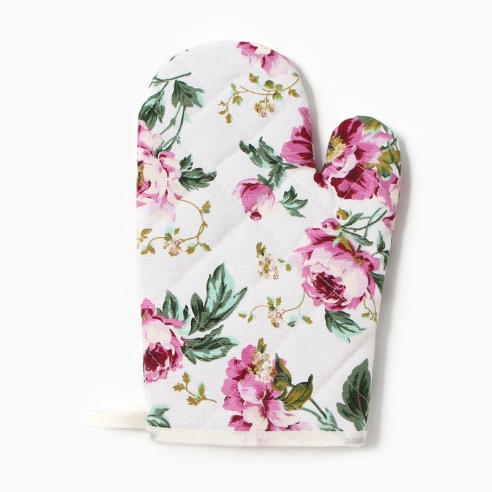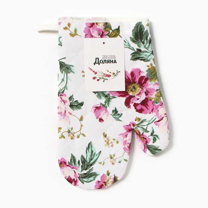 Варежка-прихватка Доляна Цветы, цвет розовый, 26*16см, 100%хл