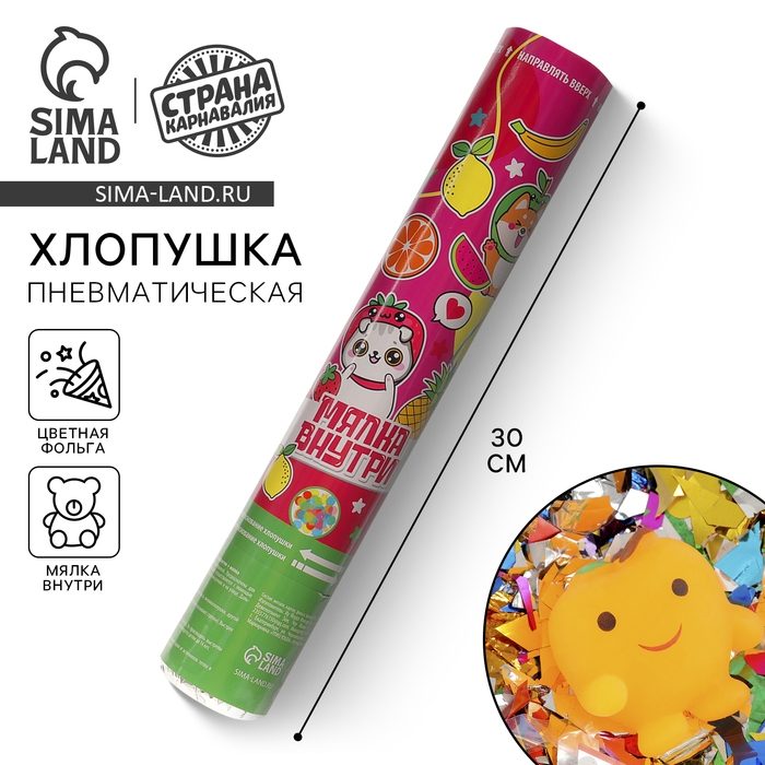 Хлопушка пневматическая "Зверюшки" 30см серпантин+ мялка
