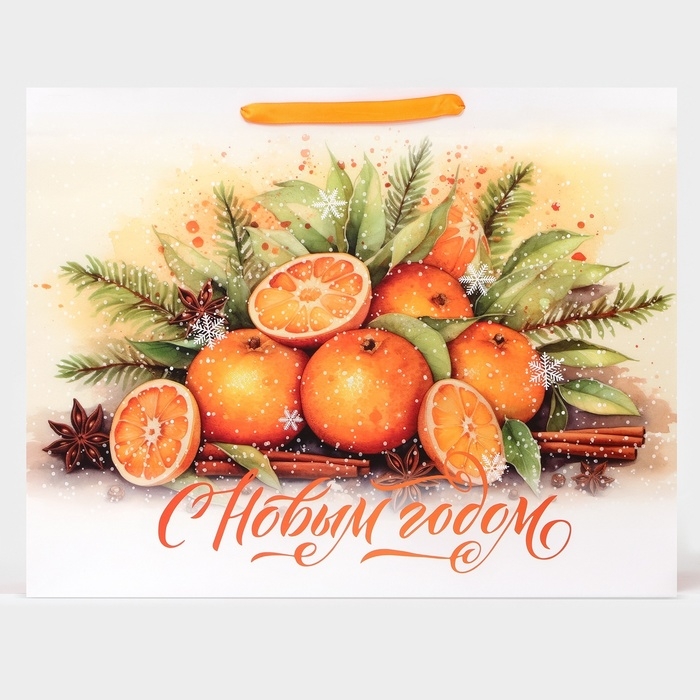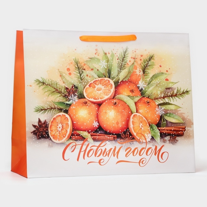 Новый год. Пакет ламинированный горизонтальный "Мандаринки", XL 49 × 40 × 19 см.