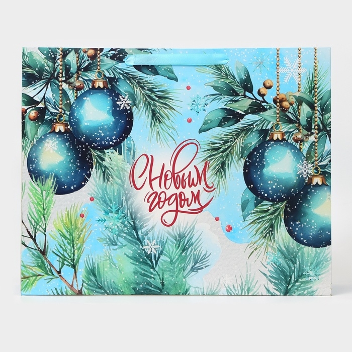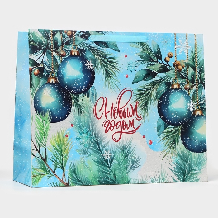 Новый год. Пакет ламинированный горизонтальный "Новогодние шары", XL 49 × 40 × 19 см.