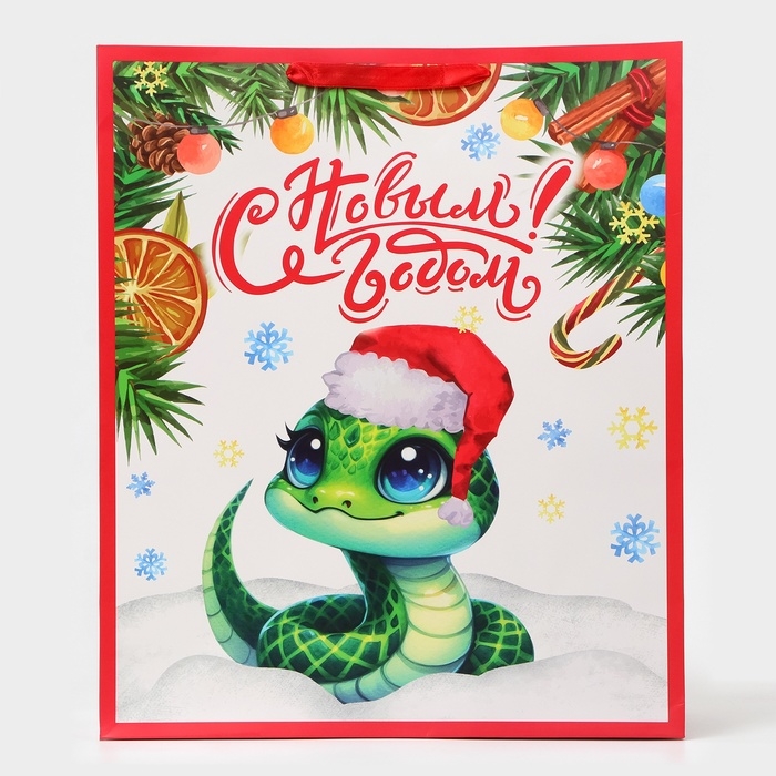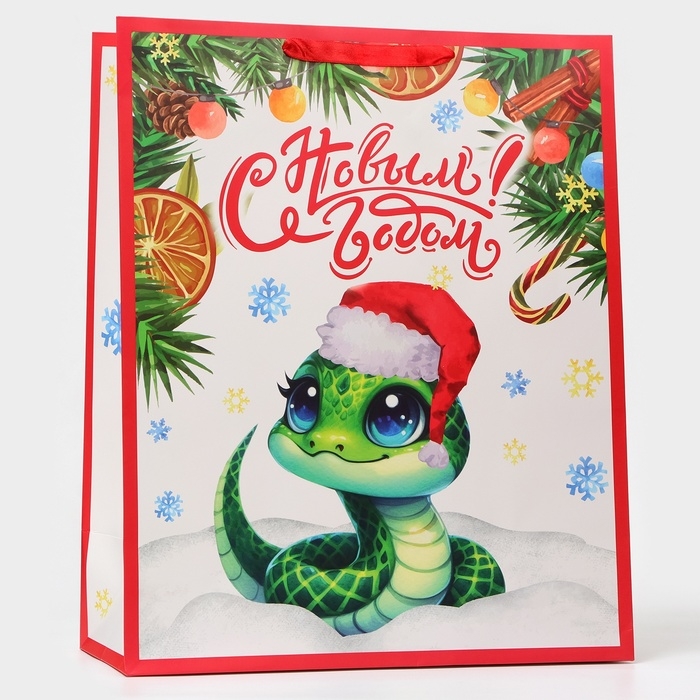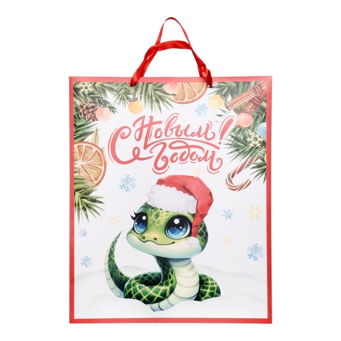 Новый год. Пакет ламинированный вертикальный "Змейка", XL 40 × 49 × 19 см.