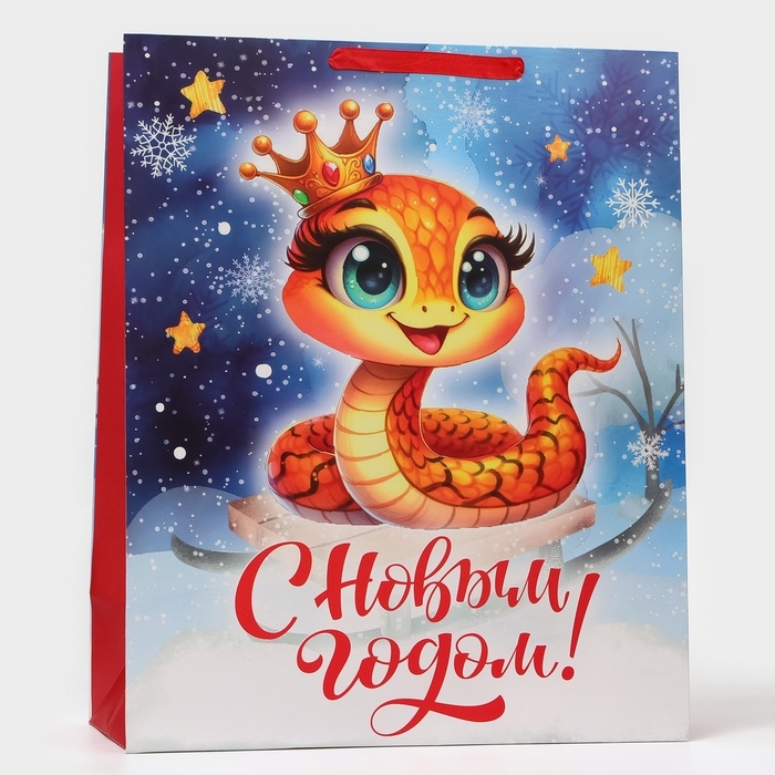 Новый год. Пакет ламинированный вертикальный "Змейка-принцесса", XL 40 × 49 × 19 см.