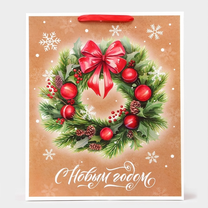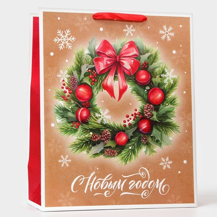 Новый год. Пакет ламинированный вертикальный "Венок", XL 40 × 49 × 19 см.