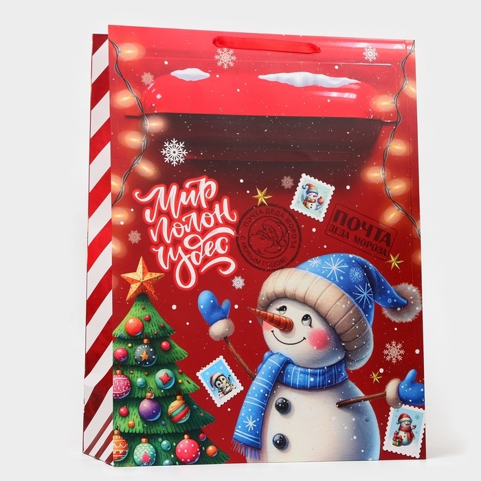 Пакет ламинированный новогодний вертикальный размером XXL 61 х 46 х 20 см — идеальный выбор для упаковки новогодних подарков!