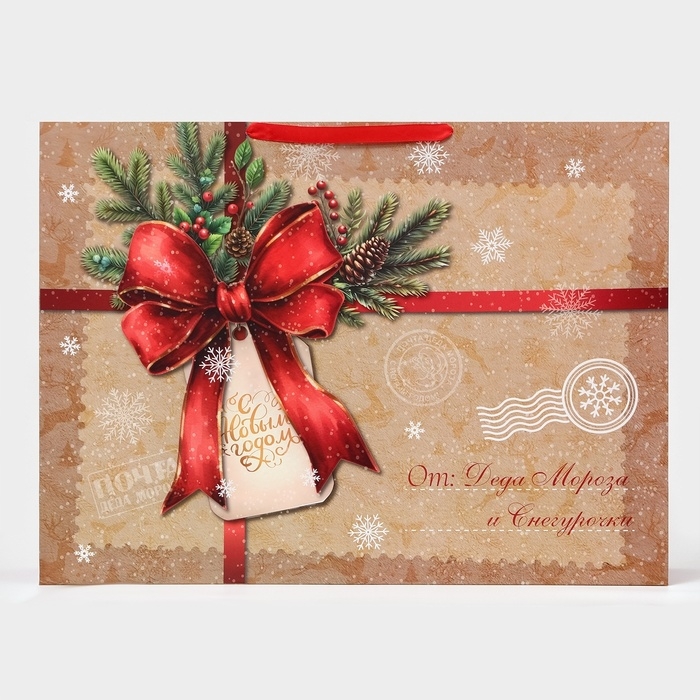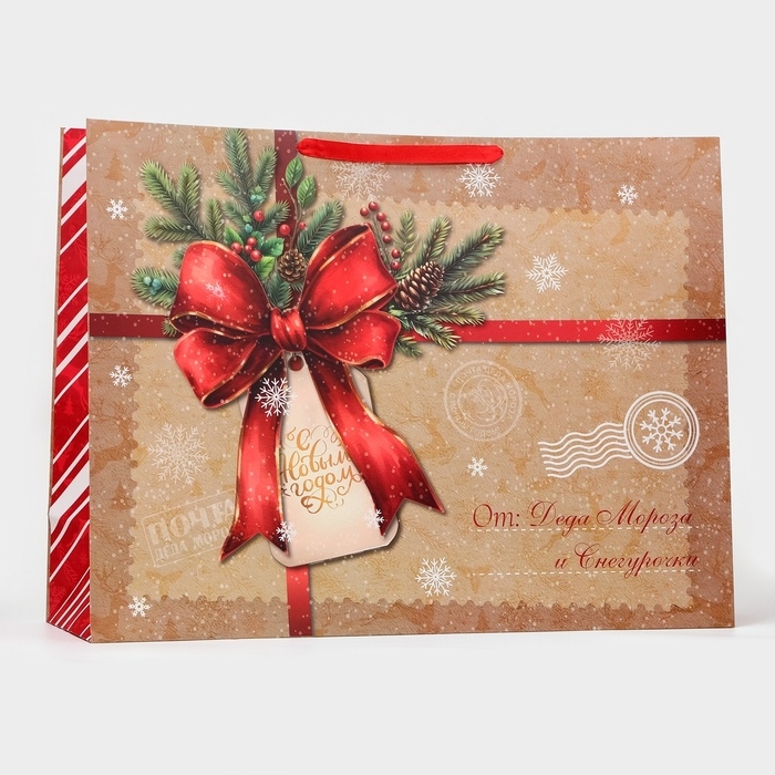 Пакет ламинированный новогодний горизонтальный размером XXL 46 х 61 х 20 см — идеальный выбор для упаковки новогодних подарков!