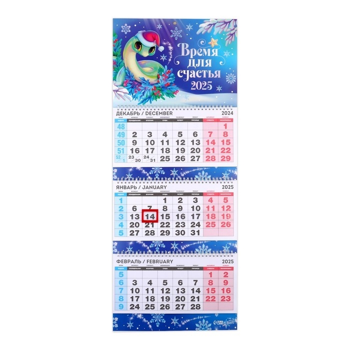Календарь 2025 настенный, квартальный «Новый год: Время для счастья», 29,5 х 73 см, новогодняя серия