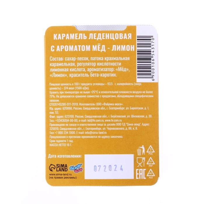 Новый год. Леденцы "С Новым 2025 Годом! " символ со вкусом мёд с лимоном, 16 г