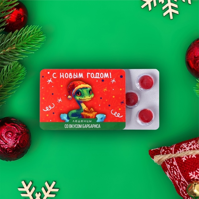Новогодние карамельные леденцы в блистере с изображением символа года — змеи, со вкусом барбариса, станут ярким и оригинальным акцентом вашего праздника. Эти леденцы отличаются не только привлекательным дизайном, на каждом из них изображена змея, символизирующая наступающий год, но и насыщенным вкусом барбариса, который добавляет сладкое и немного кислое удовольствие. Карамельный леденец, упакованный в удобный блистер, легко вписывается в любой новогодний декор и приятно радует глаз.