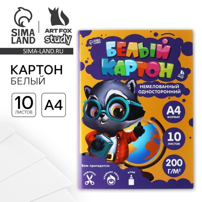 Картон белый А4 немелованный односторонний 10 листов «1 сентября: Енотик» 200 гр
