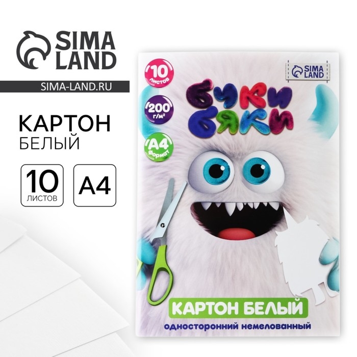 Картон белый А4 немелованный односторонний 10 листов 200г/м², в папке «1 сентября: БукиБяки»