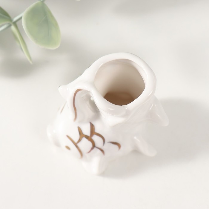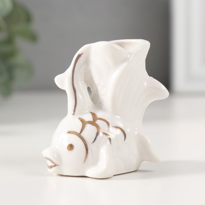 Сувенир керамика подставка д/зубочисток "Белая рыбка" с золотом 5,2х4х5,5 см