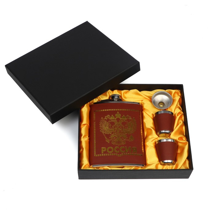 Подарочный набор "Двуглавый орёл" 4в1: фляжка 240 мл, воронка, 2 рюмки, 17 х 19 см