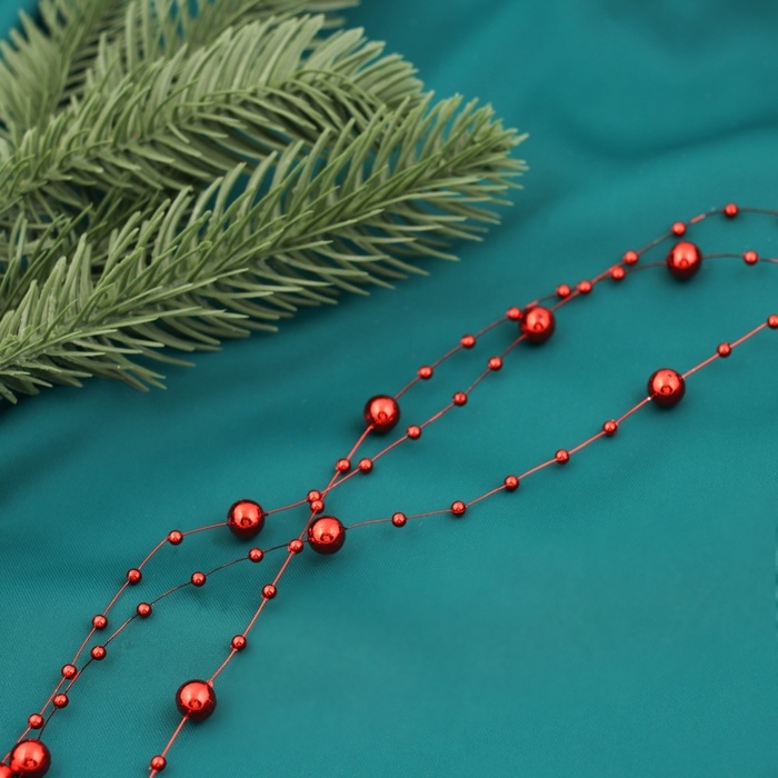 Бусы на ёлку 2 м d-7 мм "Бусины нити" красный