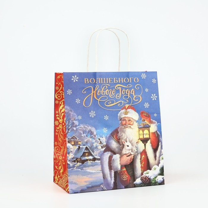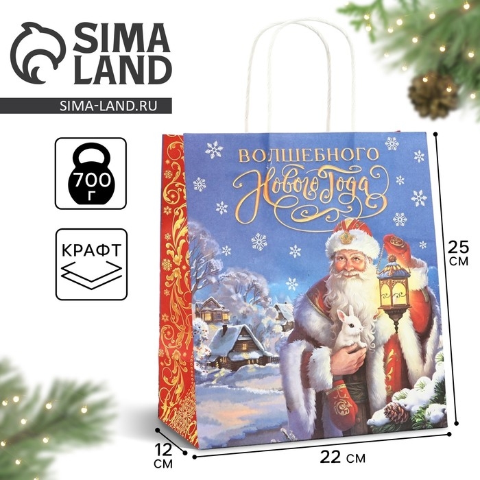 Пакет подарочный новогодний крафтовый «Яркого нового года», 22 х 12 х 25 см , Новый год