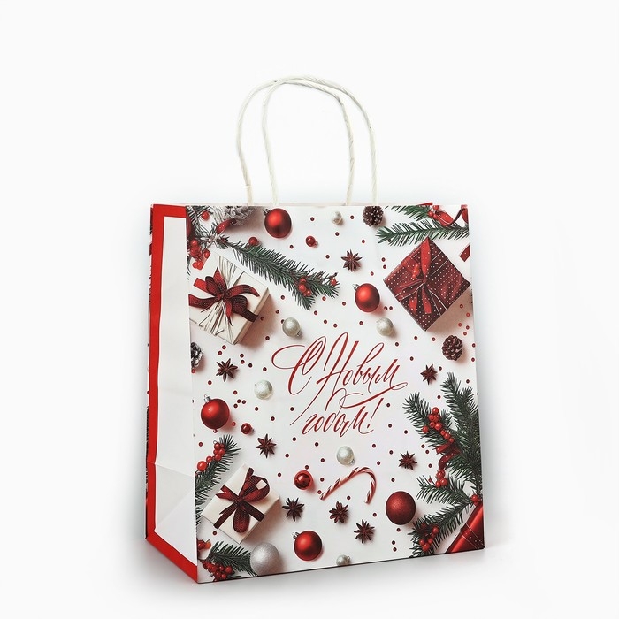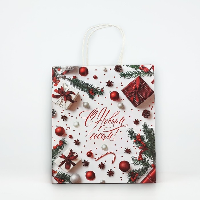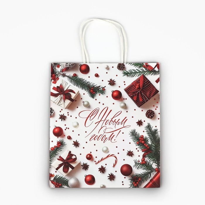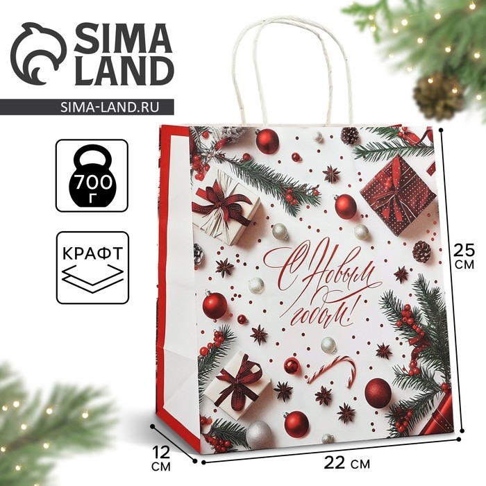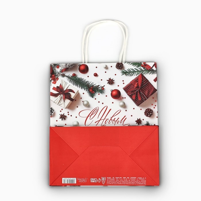 Пакет подарочный новогодний крафтовый «С Новым годом», 22 х 12 х 25 см , Новый год