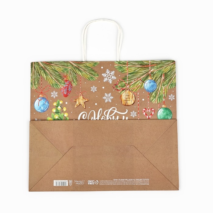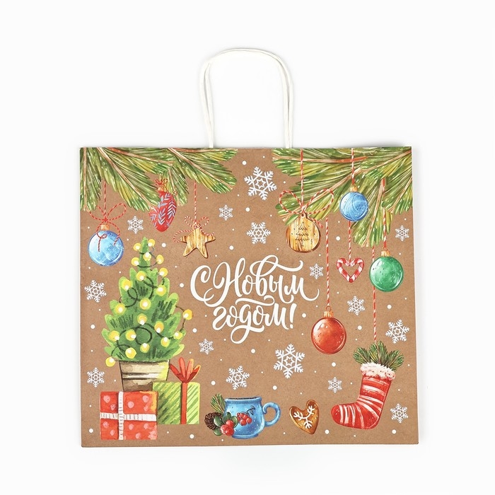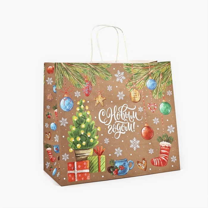 Пакет подарочный новогодний крафтовый «Весёлого нового года», 28 х 15 х 32 см , Новый год